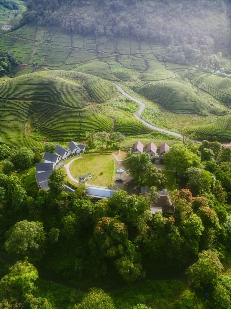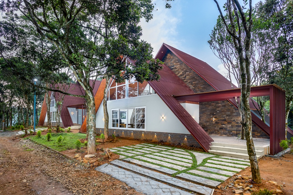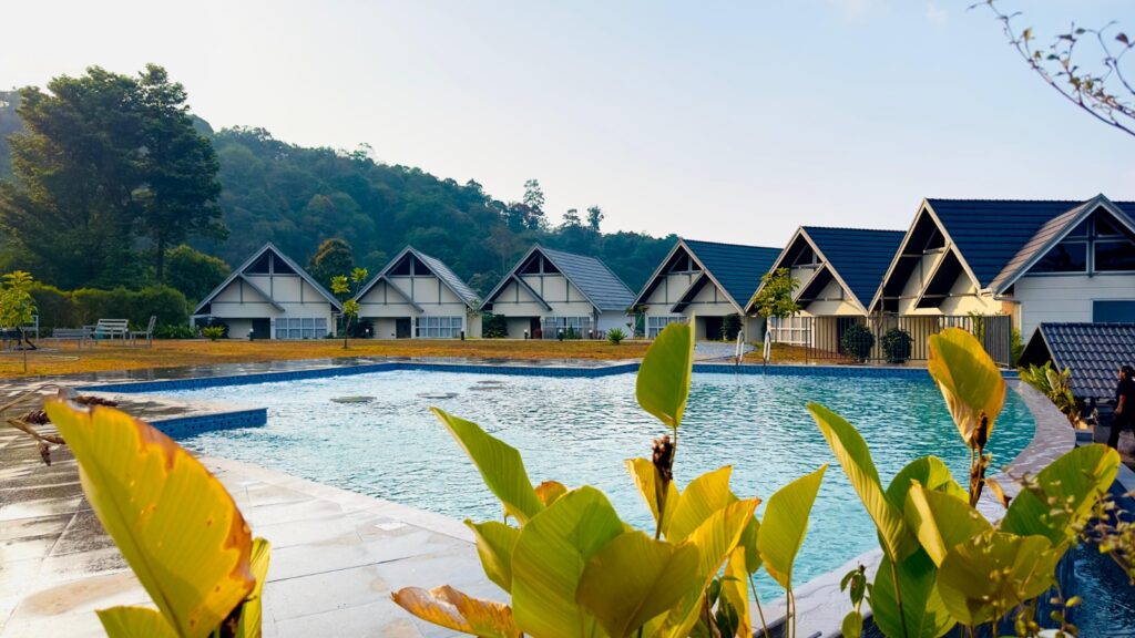 Munnar Highlands is a charming hilltop stay with Alpine-style cottages, manicured gardens, and misty mountain views.
